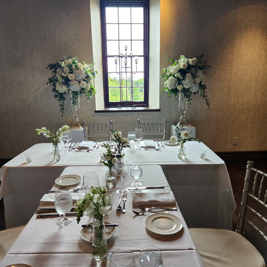 Our full service weddings include set up/delivery, ceremony to reception floral change overs, late night pick up of rented items.